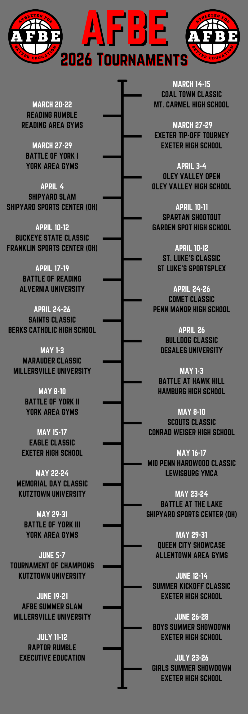 | 6/19 – 21 | AFBE Summer Slam | Millersville | $225 | |